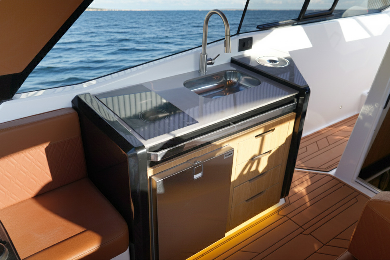 La V370 Crossover redefine lo que significa navegar con estilo. Su diseño de líneas deportivas se combina con amplios espacios sociales y un interior pensado para el máximo confort. Ideal para quienes buscan experiencias memorables con amigos o familia, ofrece un equilibrio perfecto entre lujo, desempeño y funcionalidad en cada salida.
